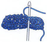 Введите крючок в следующую петлю справа, захватите нить, протяните через петлю, еще раз захватите нить и протяните ее через две петли, находящиеся на крючке.