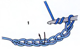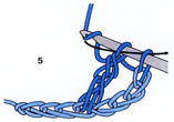 Сделайте два накида, после чего введите крючок в пятую петлю от крючка (1).