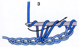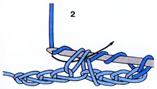 Захватите нить и протяните ее через первые две петли на крючке (3).
