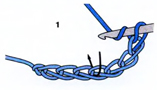 Вновь захватите нить и протяните ее через первые две петли на крючке (3).
